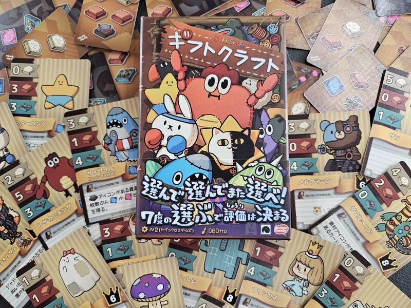 『ギフトクラフト』は資源カードを集めて、お気に入りの『ぬいモン』を1体作り、得点を競います。