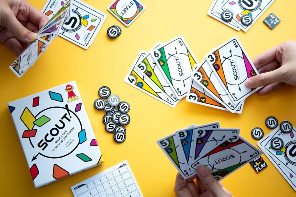 スカウトは上下で別の数字が記載されたカードを使い、配られた最初に上下どちらを使うのかを決めるのが特徴。そして、並べ替えも禁止。