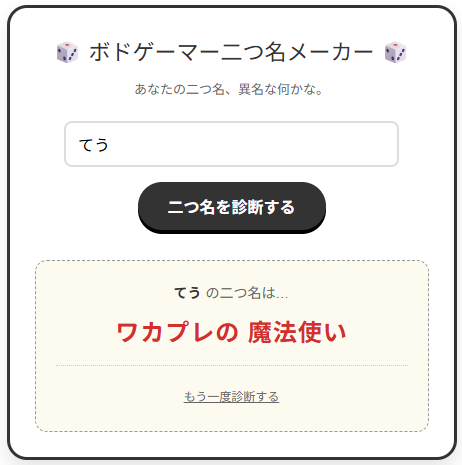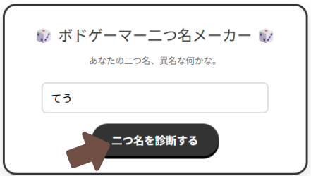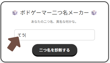 あなたのニックネームからボードゲーマーの二つ名を診断します。