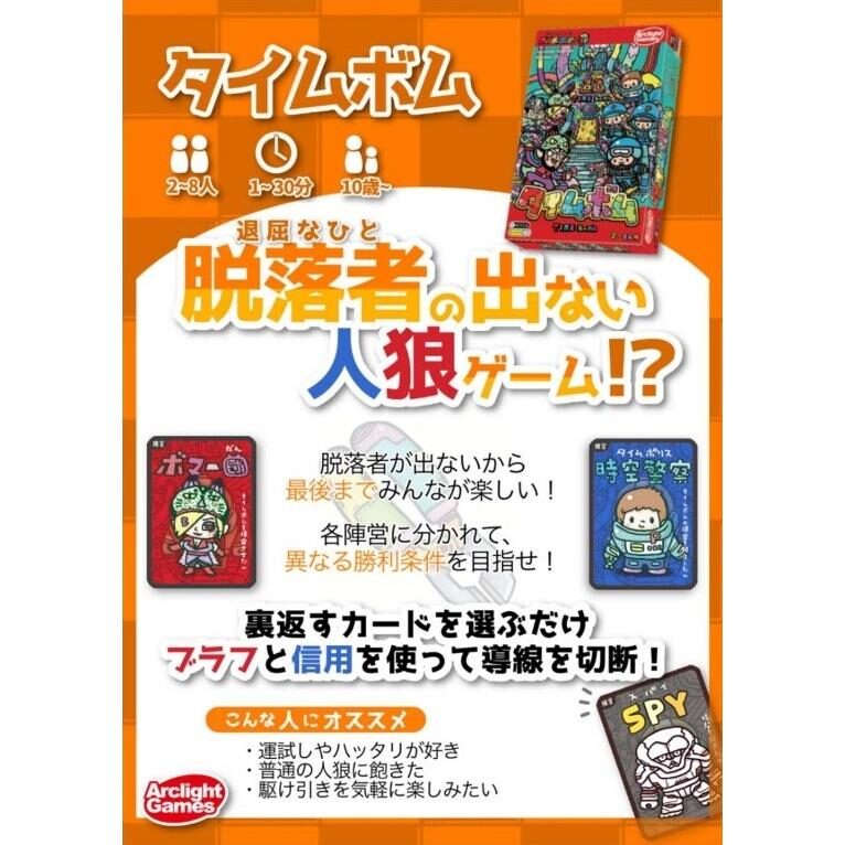 タイムボム』は、爆弾を止める警察と妨害するボマー団に分かれて遊ぶ正体隠匿ゲームです。