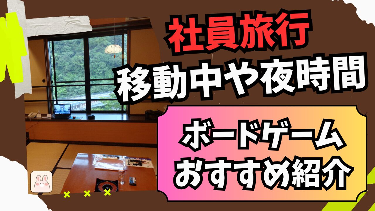 社員旅行のバスでの移動中や宴会の後の夜の時間、2次会後や3次会後にどこかの部屋で集まって、もう少し何かしたいなという時に、ぜひ遊んでほしいボードゲームを紹介します。