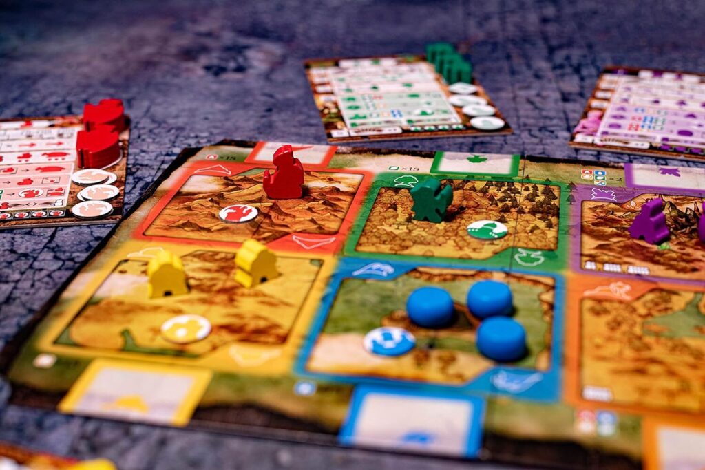 さらに、制圧したエリアから得られる資源をどう使うかも重要なポイント。コマを増やすか、拠点建設を狙うか、その判断で勝敗が分かれます。
