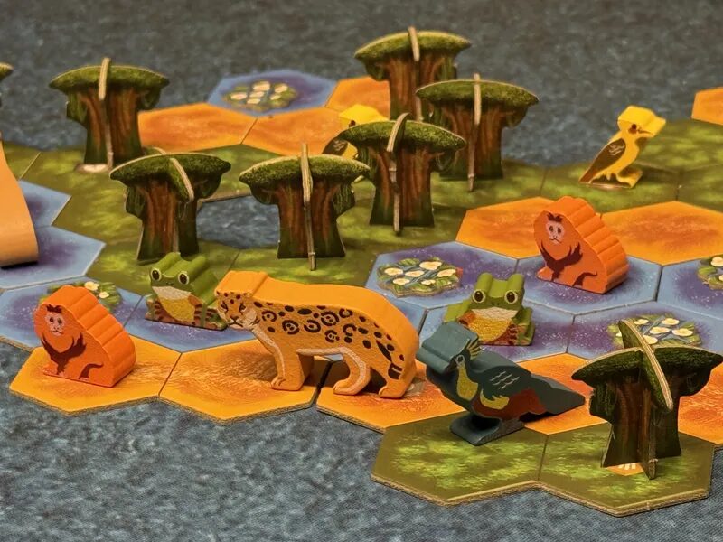『ライフ・オブ・ジ・アマゾニア』は、自然保護区の管理者となり森・川・動物をバランスよく育てるボードゲームです。