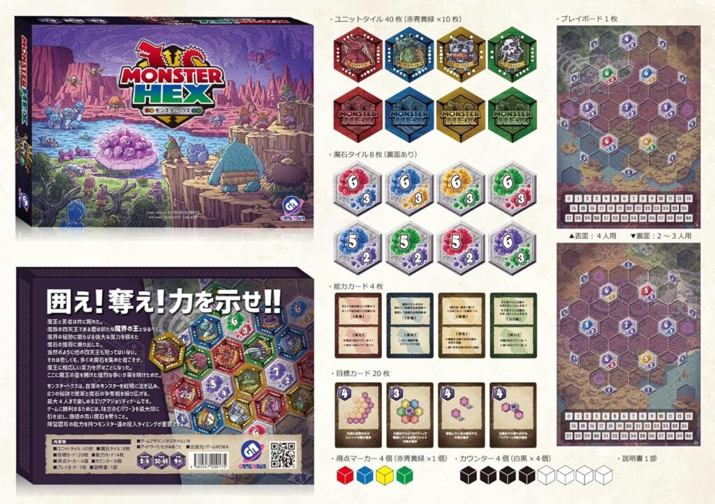 『モンスターヘクス』は、六角形のマスが広がる世界で、いろんなモンスターを配置し魔石を獲得するゲーム。どのモンスターを、どこに置くのか。それだけで勢力図が一気に変わります。