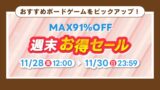 そんな駿河屋が毎週末セールを行っています。「あなたが気になっているボドゲ」「駿河屋でお得になっているボドゲ」「駿河屋で話題のボドゲ」などなどピックアップして紹介していきます。