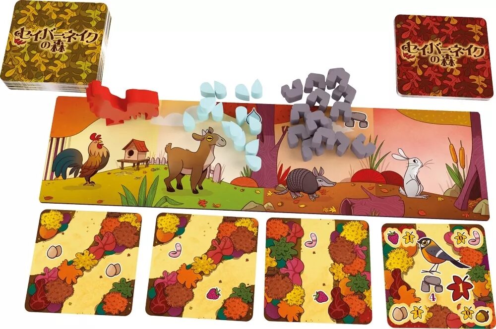 このゲームは、動物たちの食料集めを手伝うカード配置ゲームです。