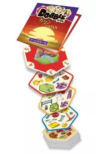 世界2000万個超の大ヒット「ドブル」と名作「カタン」の夢のコラボ!カタンのアイコンを使った絵合わせに、港・騎士・蛮族など5つのミニゲームを収録し、チーム戦も楽しめます。約15分でサクッと遊べるので、カタンファンはもちろん、パーティゲームの入門にもぴったりです。