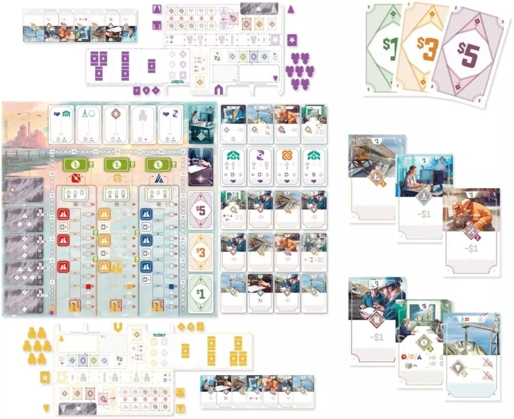 地熱リチウム抽出企業を経営するガチめの戦略ゲーム!カードがお金にもアクションにもなる変則ワーカープレイスメントで、常にリソースがカツカツの超悩ましい意思決定が続きます。木駒たっぷりの豪華コンポーネントも魅力で、小箱なのに重量級の読み応えは必見です。