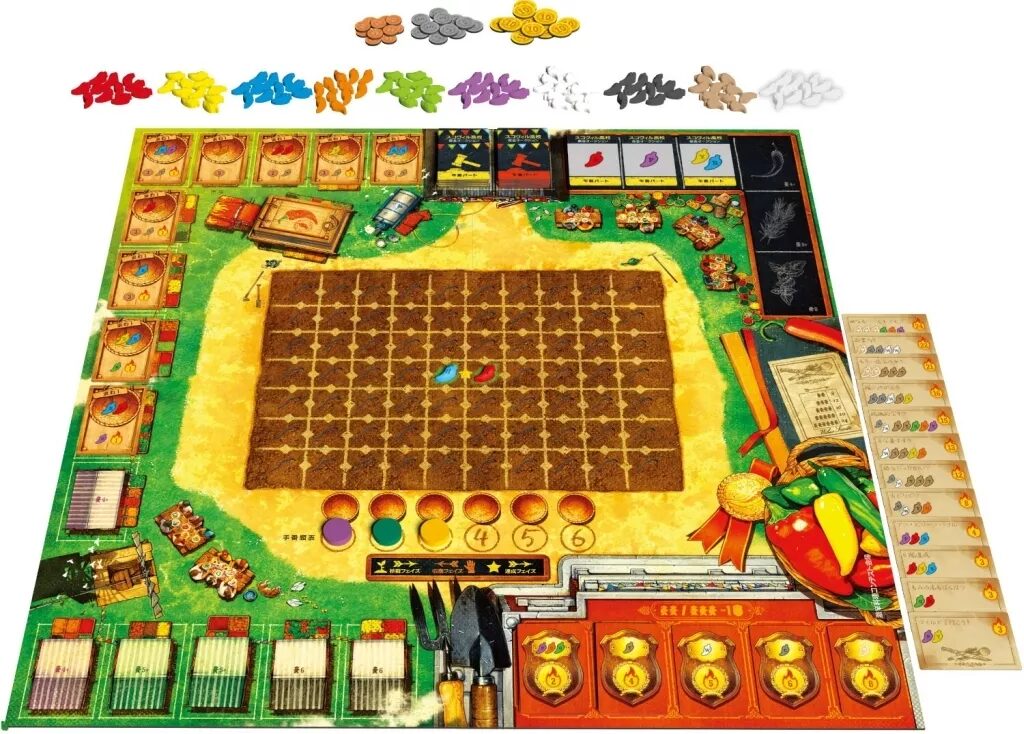 トウガラシを交配してより辛い品種を作り出す、唯一無二のテーマが最高に楽しい!収穫の順番や農道の取り合いで思惑がぶつかる悩ましさがたまらなく、拡張「Labs」やソロルールも収録した完全版。1〜6人と幅広い人数に対応しているのも嬉しいポイントです。