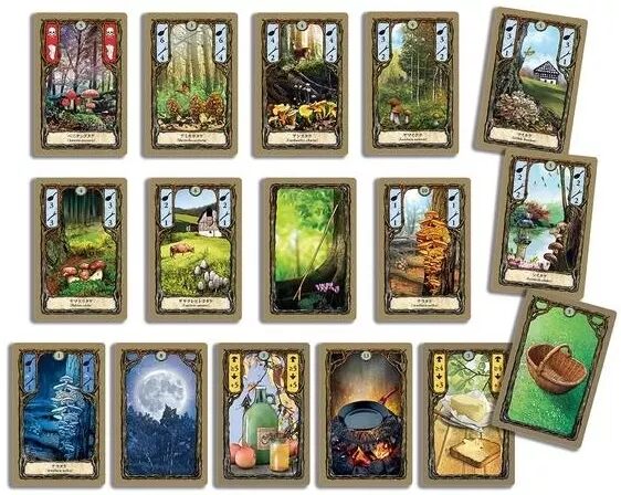 秋の森でキノコ狩りを楽しむ2人専用カードゲーム!同じ種類のキノコを3枚以上集めてフライパンで調理するシンプルさながら、手札管理・タイミング・相手との場の取り合いが絶妙に絡み合います。美麗なキノコのイラストも魅力で、カップルや夫婦のまったりゲームに最高の一本です。