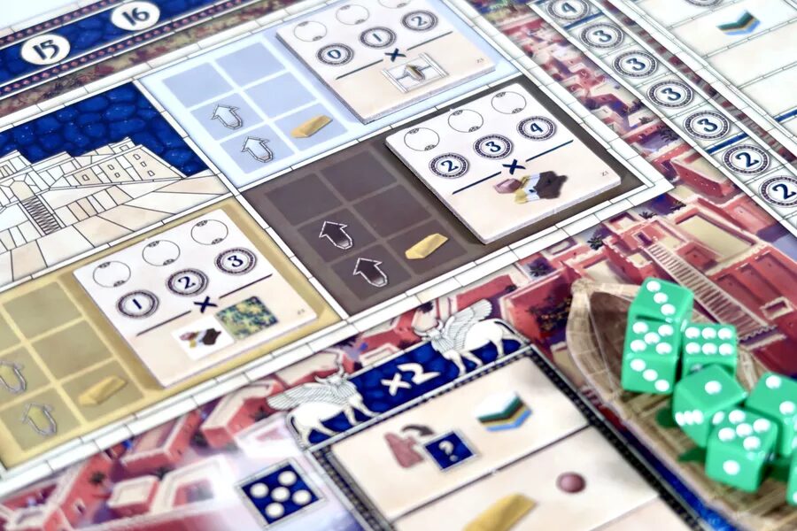 タバヌシ:ウルの建築士たちは、ダイスを使って建築士として名を刻むことを目指すボードゲームです。