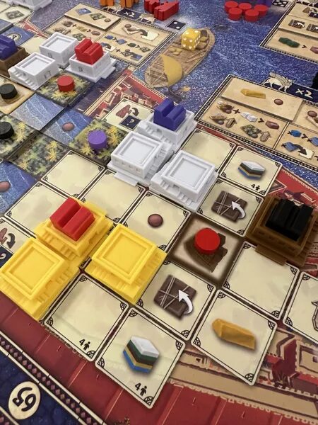 Tabannusi: Builders of Ur | Image | BoardGameGeek 上記画像の場合、紫プレイヤーは白の家が3の広さを持っています。